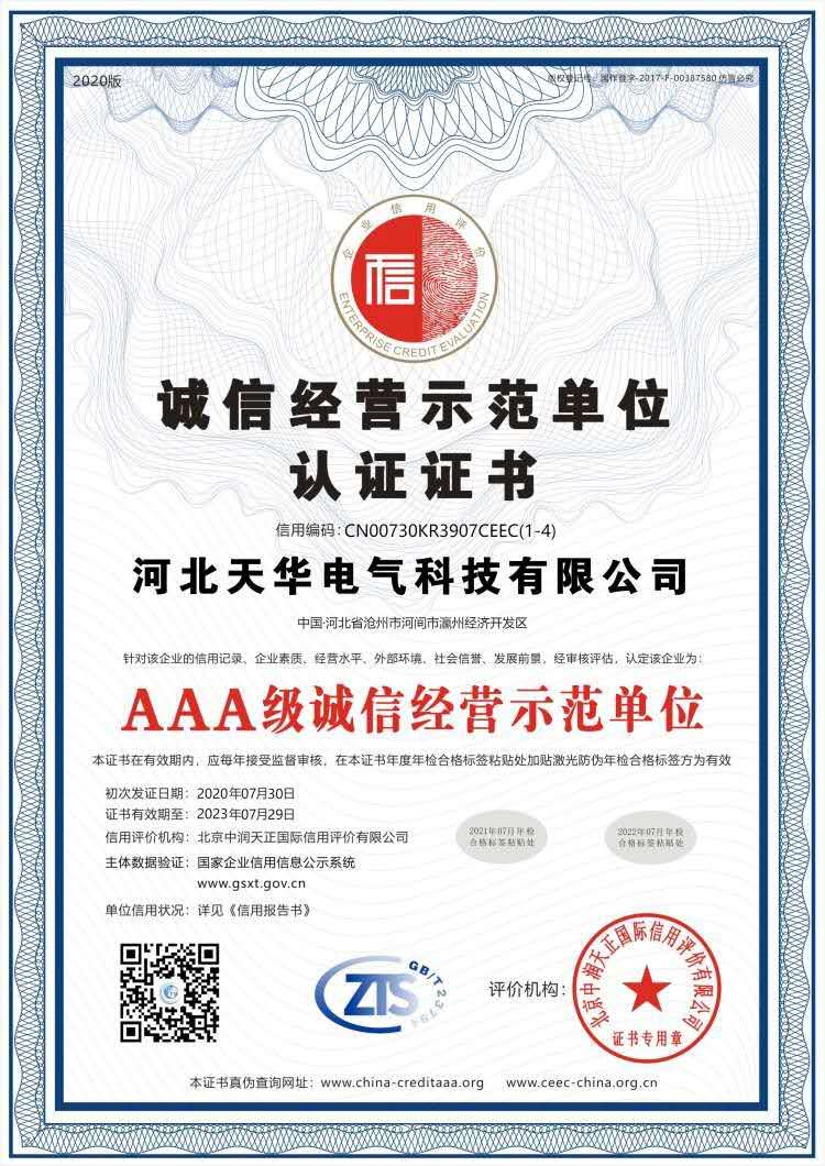 誠信經(jīng)營示范單位認(rèn)證證書