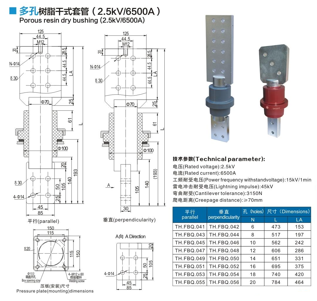 多孔樹脂干式套管2.5kV/6500A