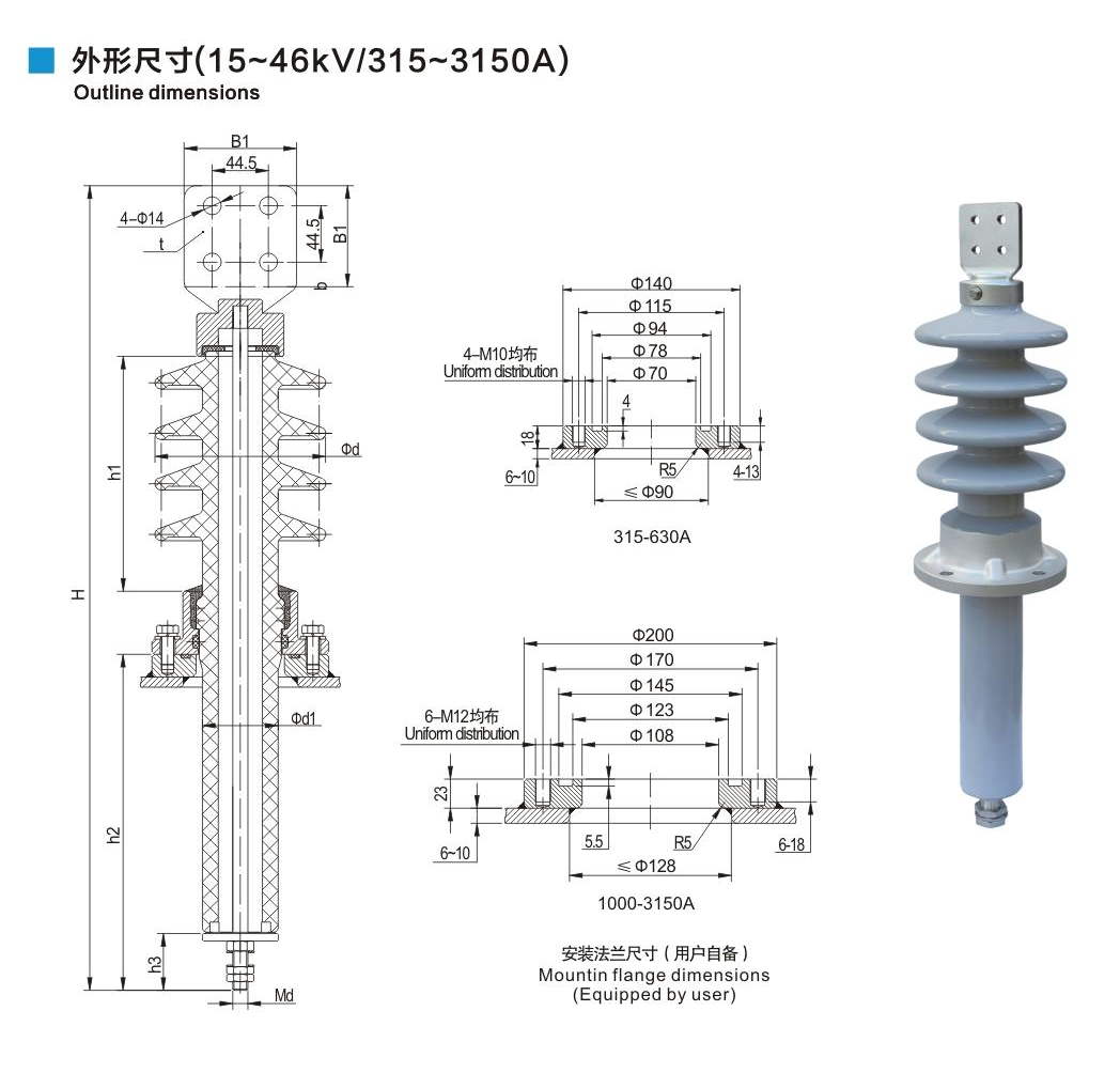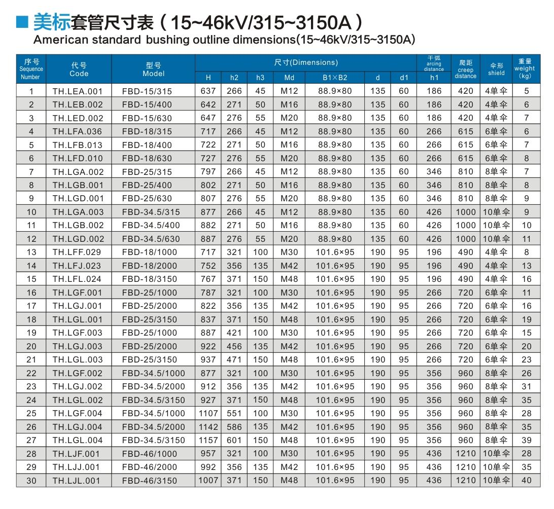 美標(biāo)套管15~46kV/315~3150A