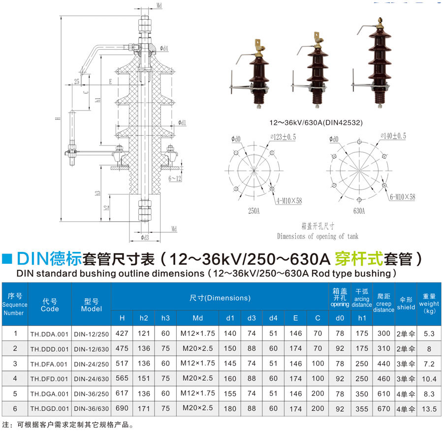 12~36kV/250~630A through-rod casing