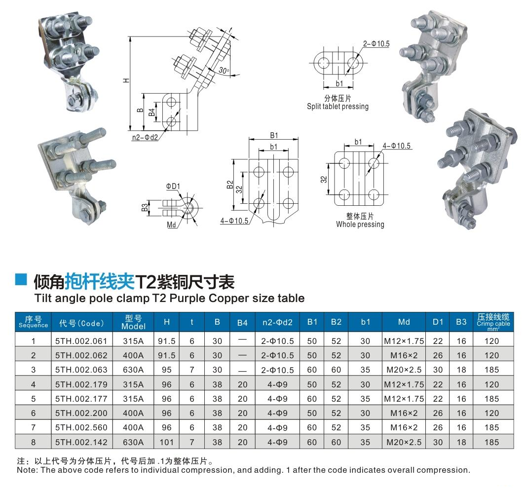 傾角抱桿線夾T2紫銅