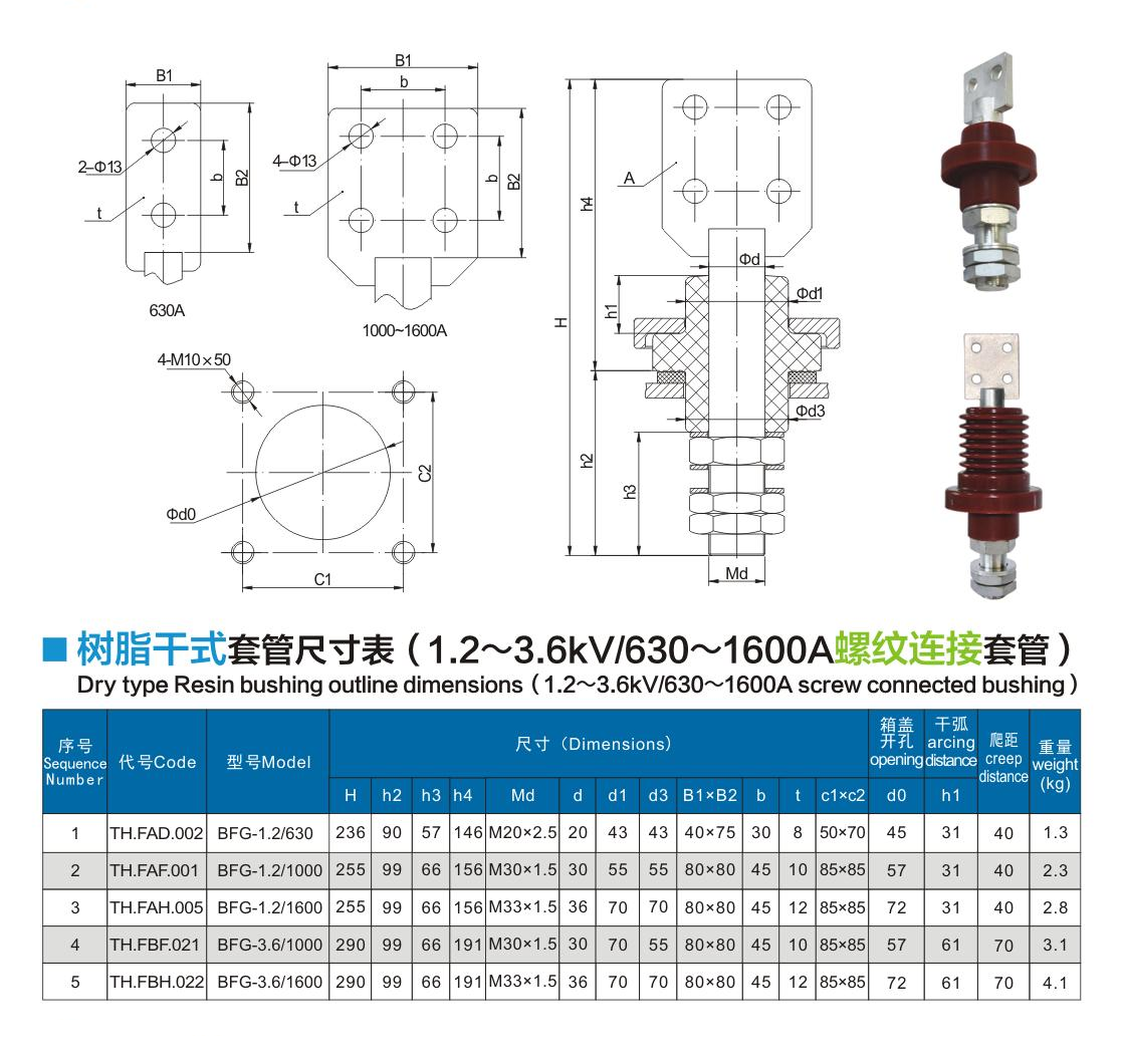 樹脂干式套管1.2~3.6kV/630~1600A螺紋連接套管