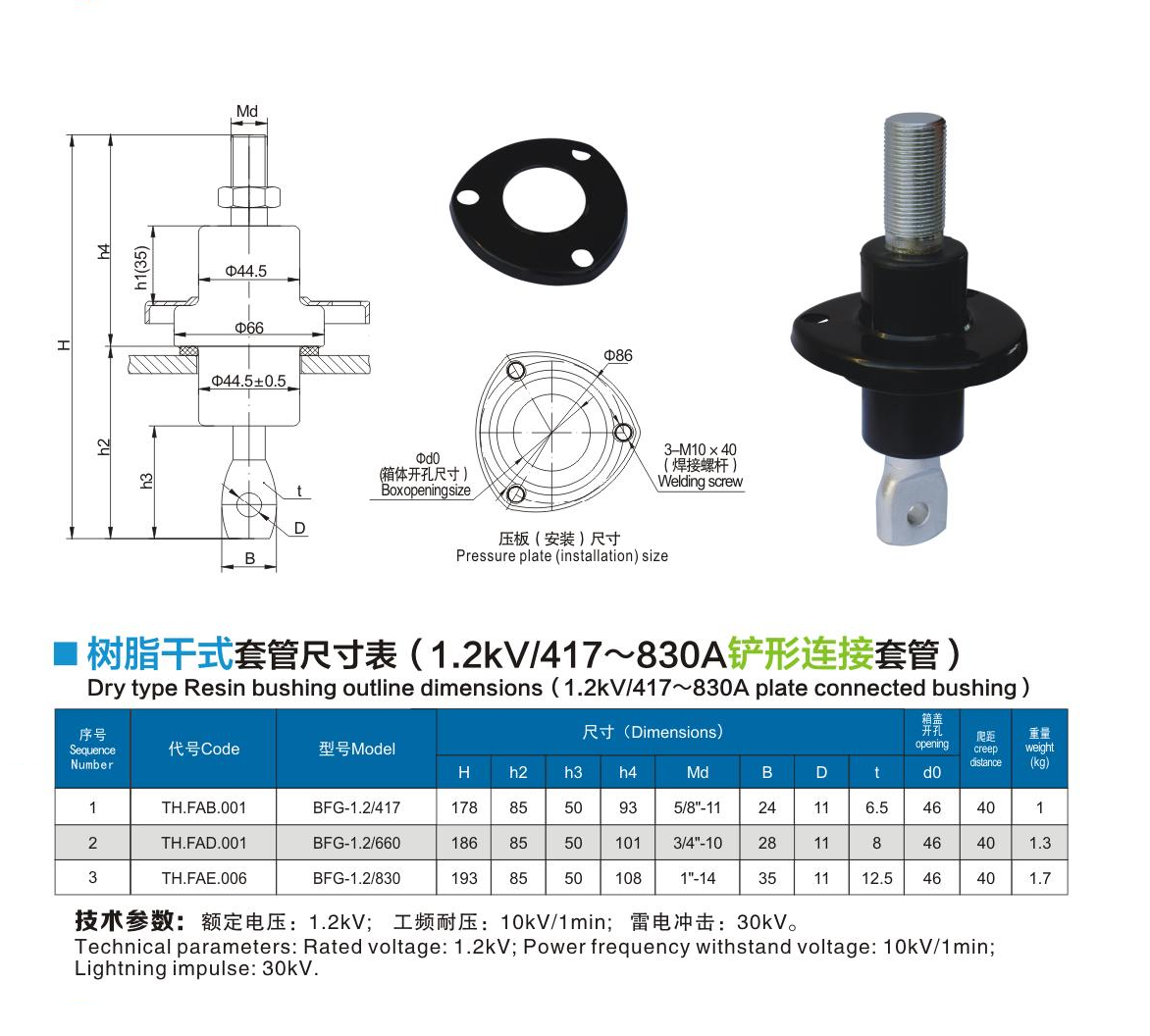 樹脂干式套管1.2kV/417~830A鏟形連接套管