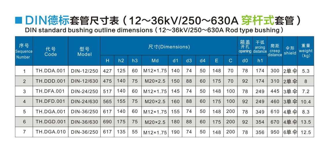 DIN德標(biāo)套管12~36kV/250~630A穿桿式套管