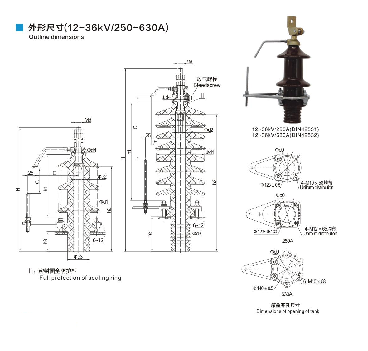 DIN德標套管12~36kV/250~630A穿纜式套管