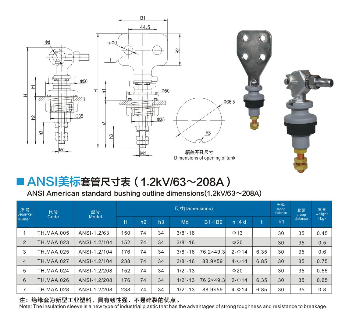 ANSI美標(biāo)套管1.2kV/63~208A