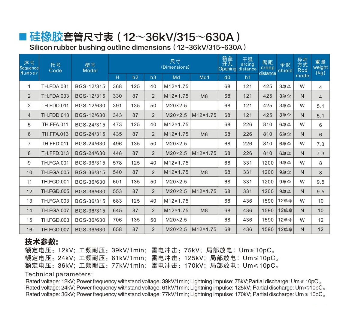 硅橡膠套管12~36kV/315~630A